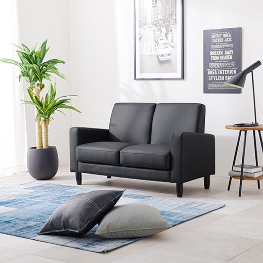 ソファ コンパクトサイズ 広い座面 合成皮革