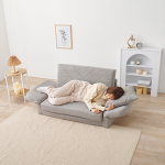 肘リクライニングソファベッドは、座面を広げると簡易ベッドに変身する便利なアイテムです。リクライニング機能が付いた肘掛けは、体勢を調整してリラックスできる角度に合わせることができます。コンパクトなサイズながら、機能性と快適さを兼ね備えたソファベッドは、お部屋にほんのり可愛い雰囲気を演出します。
