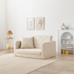 狭い空間にもスッキリと収まる幅110cmのコンパクトサイズで、ワンルームや来客用ベッドとしても最適です。座り心地はふんわりとした弾力のあるクッションで、長時間座っても疲れにくい構造になっています。さらに、キルティング生地が可愛いクッション付きで、お部屋の雰囲気を一層引き立てます。