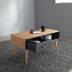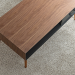 このローテーブルは幅広い使い方ができる収納付きで、リモコンや雑誌、A4サイズの用紙などを収納できます。さらに、引き出しの隣にはオープン収納スペースを設け、気軽に物を置くことができます。UV塗装により、熱や傷、汚れに強く、お手入れも簡単です。