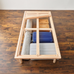 国産総調和装備をそのまま感じられる無垢檜のすのこベッド。檜本来の温かみを楽しんでいただけます。敷布団やマットレスどちらでも使用可能で、経済的かつ快適な睡眠空間を提供します。