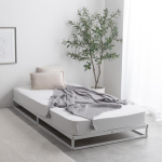 床板は通気性の良いすのこ仕様で、マットレス下の湿気を逃がし、季節を問わず快適な睡眠をサポートします。耐久性に優れた素材を使用し、安定感のあるサポート脚で快適な就寝時間を提供します。