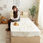 大人気の収納付きベッド、Alloys(アロイス)引出し付ベッドが登場しました。ヘッドボードには便利なフラップテーブルや照明、コンセント、収納棚が付いており、ベッド下にはキャスター付きの引出しが装備されています。フラップテーブルに携帯電話を置いて充電しながらテレビを楽しむなど、様々な使い方が可能です。